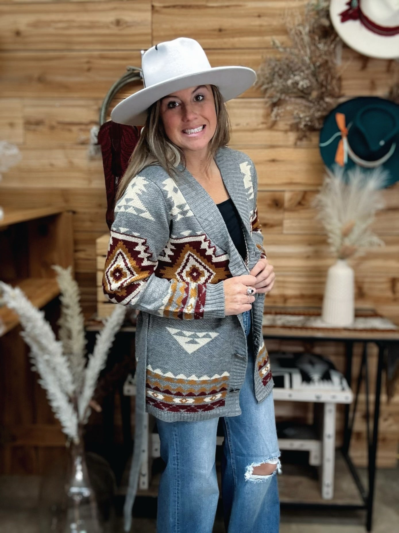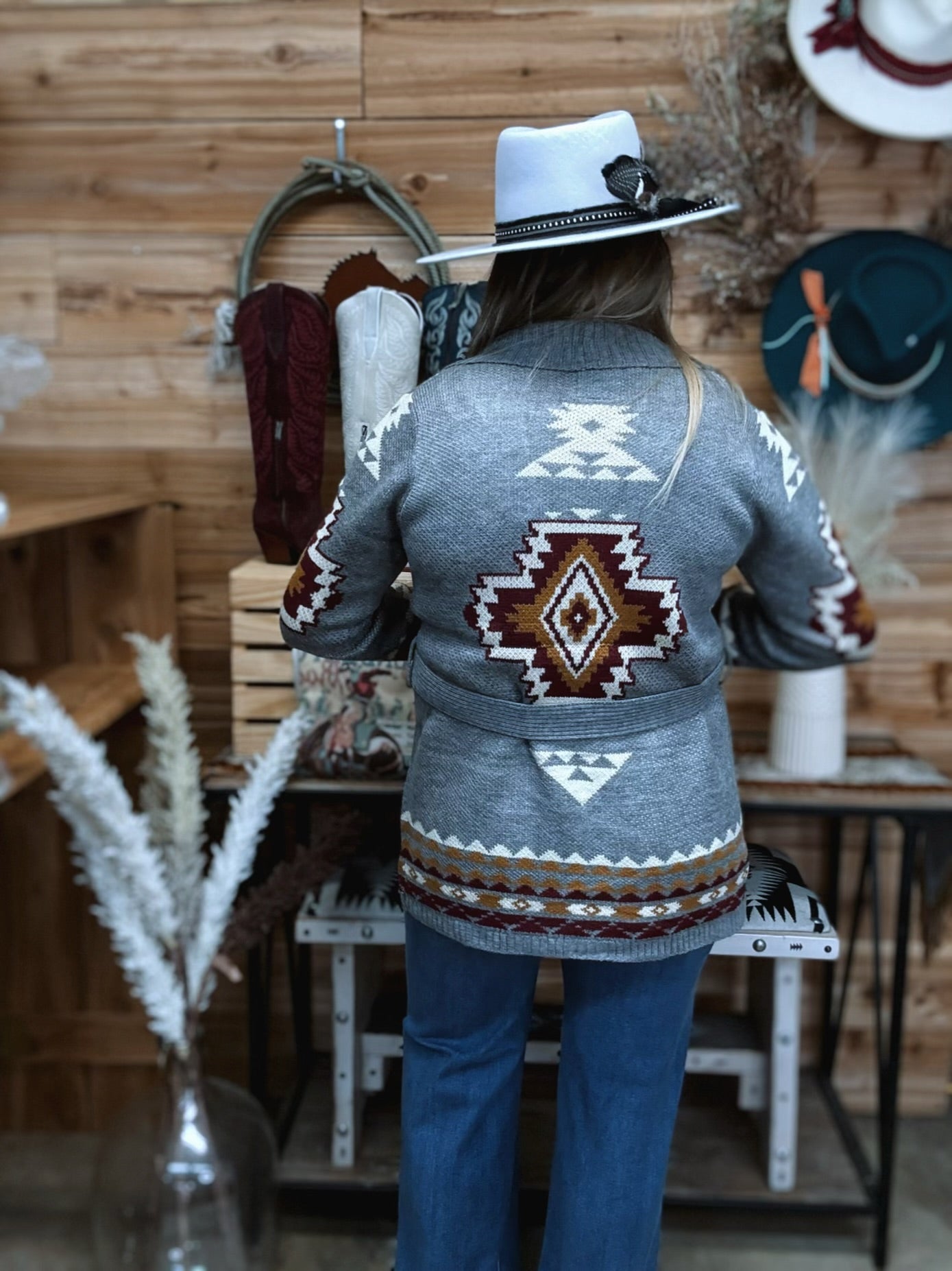 Say hello to your new go-to layering piece! This Aztec Belted Cardigan is the perfect blend of Western-inspired style and everyday versatility — making it a great choice whether you lean Western or simply love a good statement cardigan.