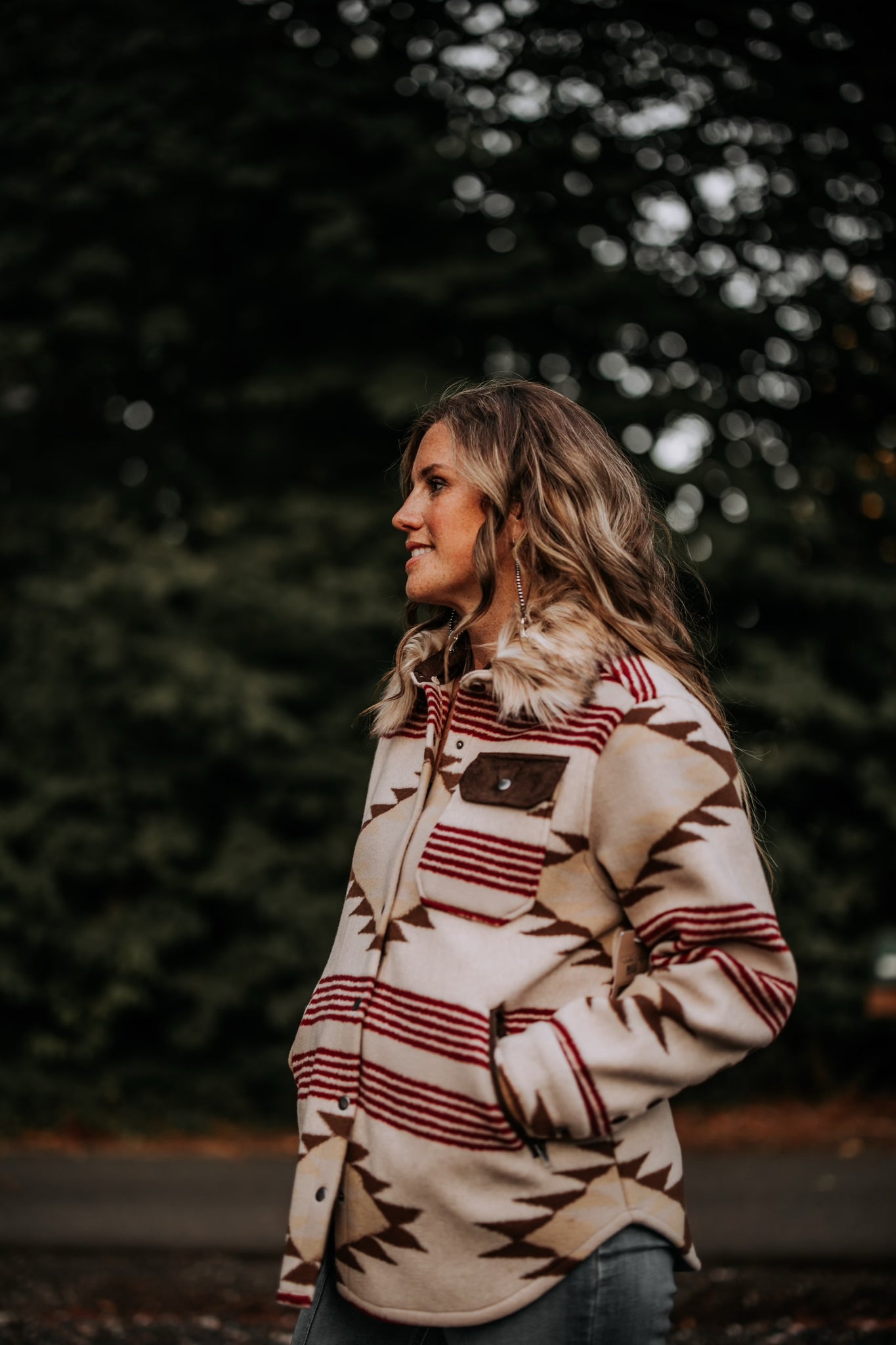 Say hello to your new fall obsession! The Tasha Polizzi Basil Jacket is a total showstopper with a stunning tribal-inspired pattern and rich earthy tones that scream cozy-chic. Designed with a flattering true-to-size fit, this jacket features a snap-button front closure, convenient side pockets, and the ultimate fall-ready detail—a removable faux fur collar for that extra touch of luxe.