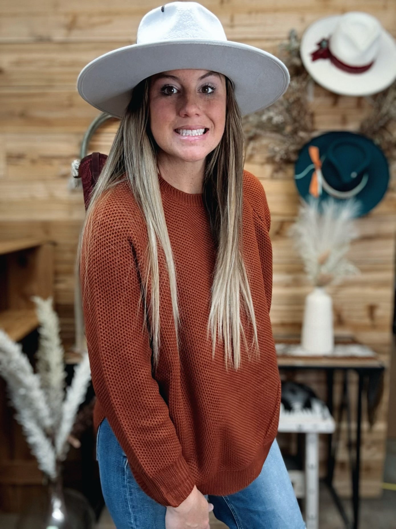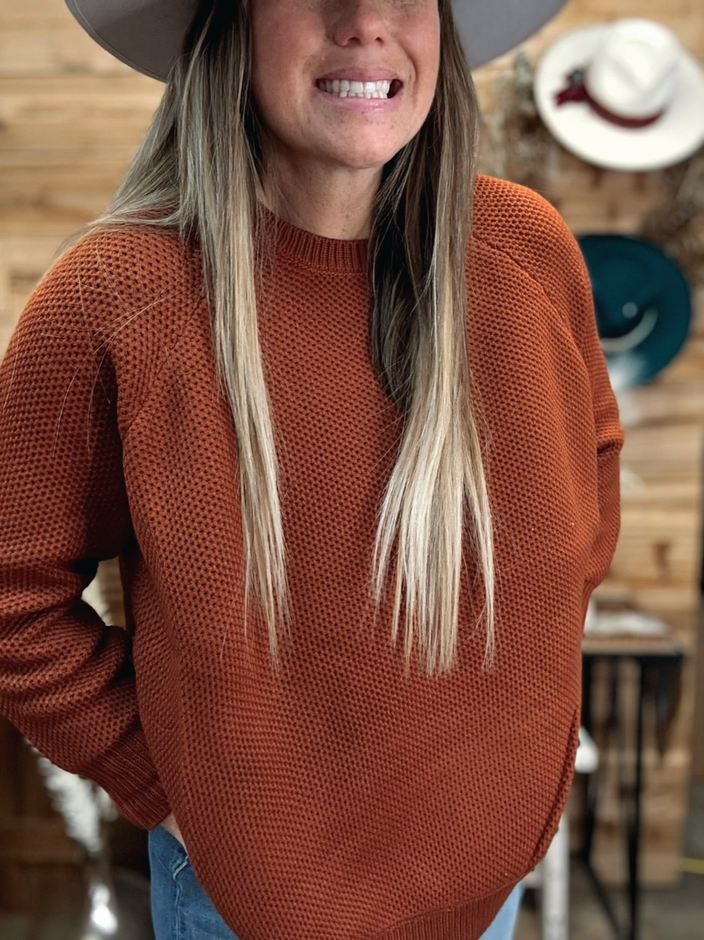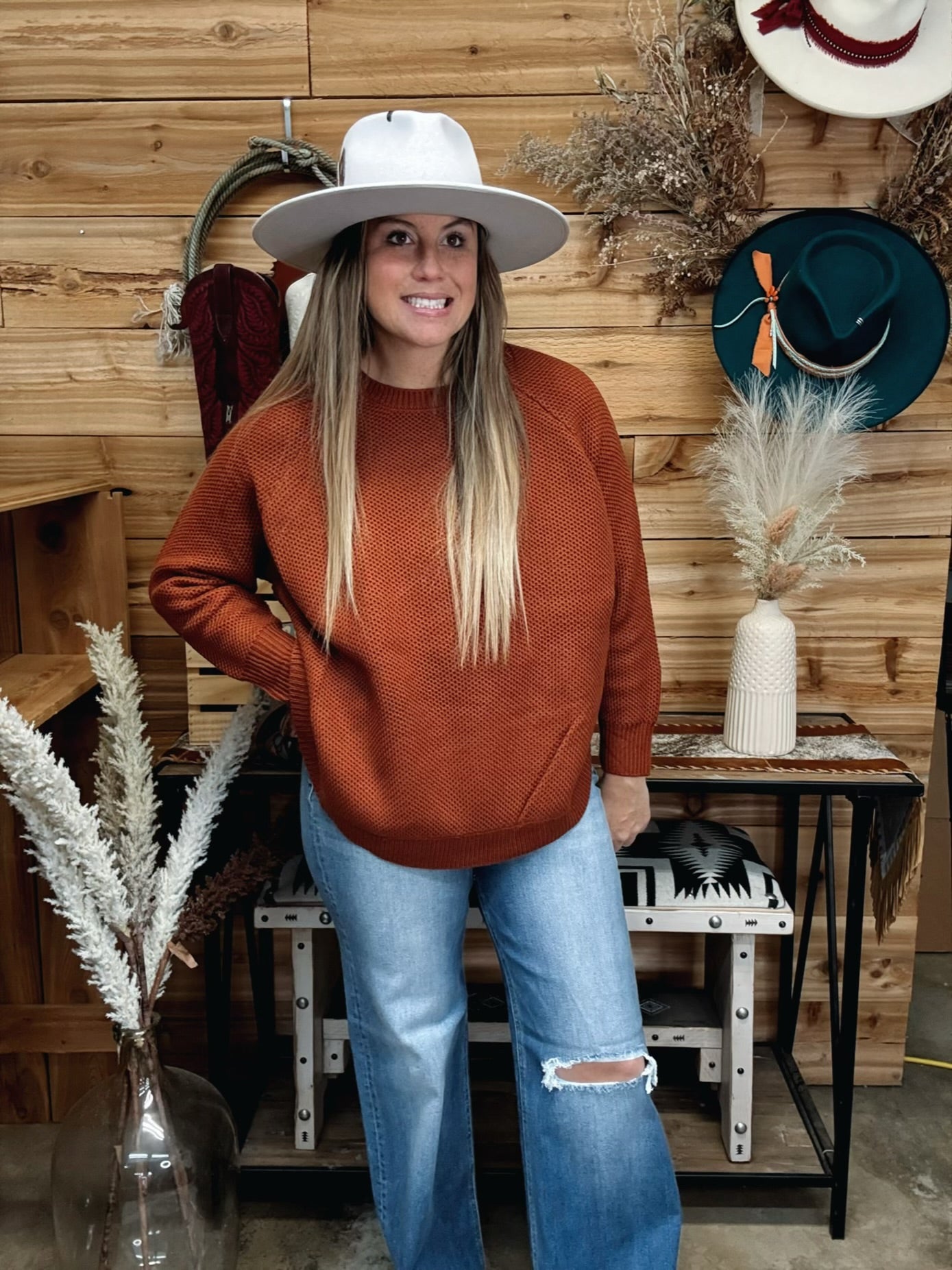 Cozy meets Western charm in this gorgeous Orange Spice Buffalo Button Sweater β the perfect pop of fall color your wardrobe has been craving. Crafted with a soft, textured knit, this sweater brings warmth without the bulk and features a flattering rounded hemline for an easy, relaxed fit.