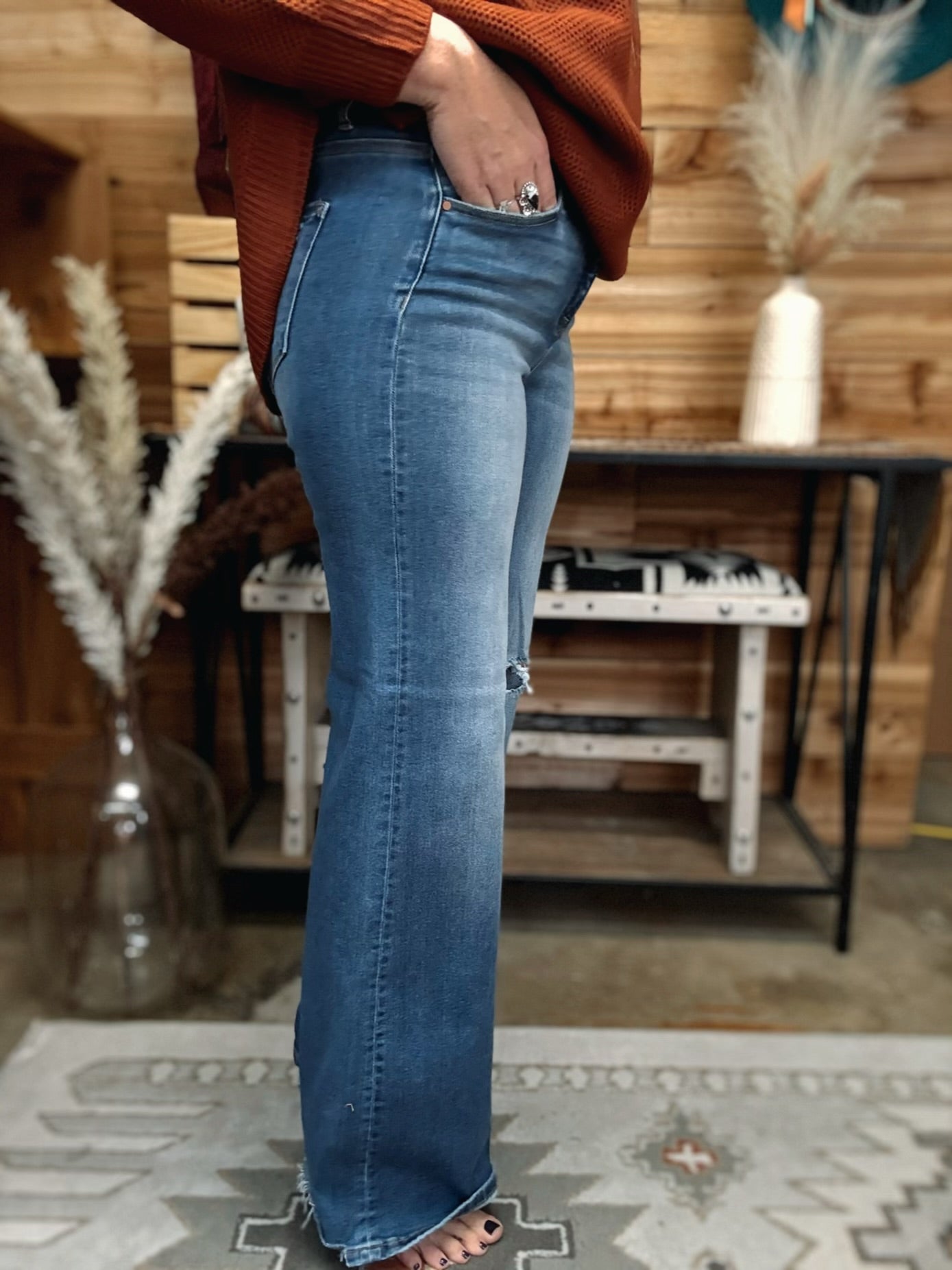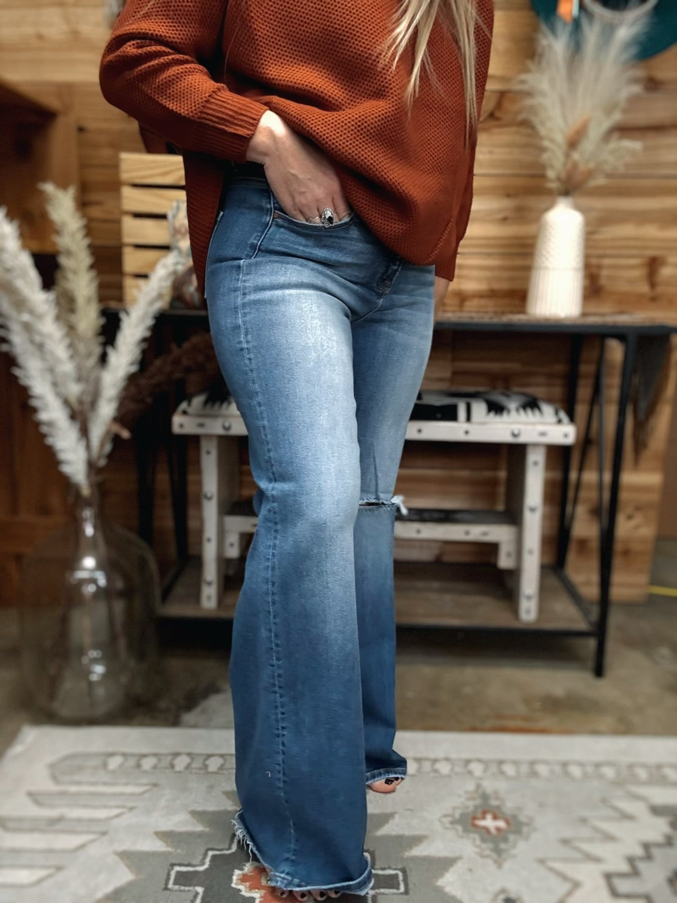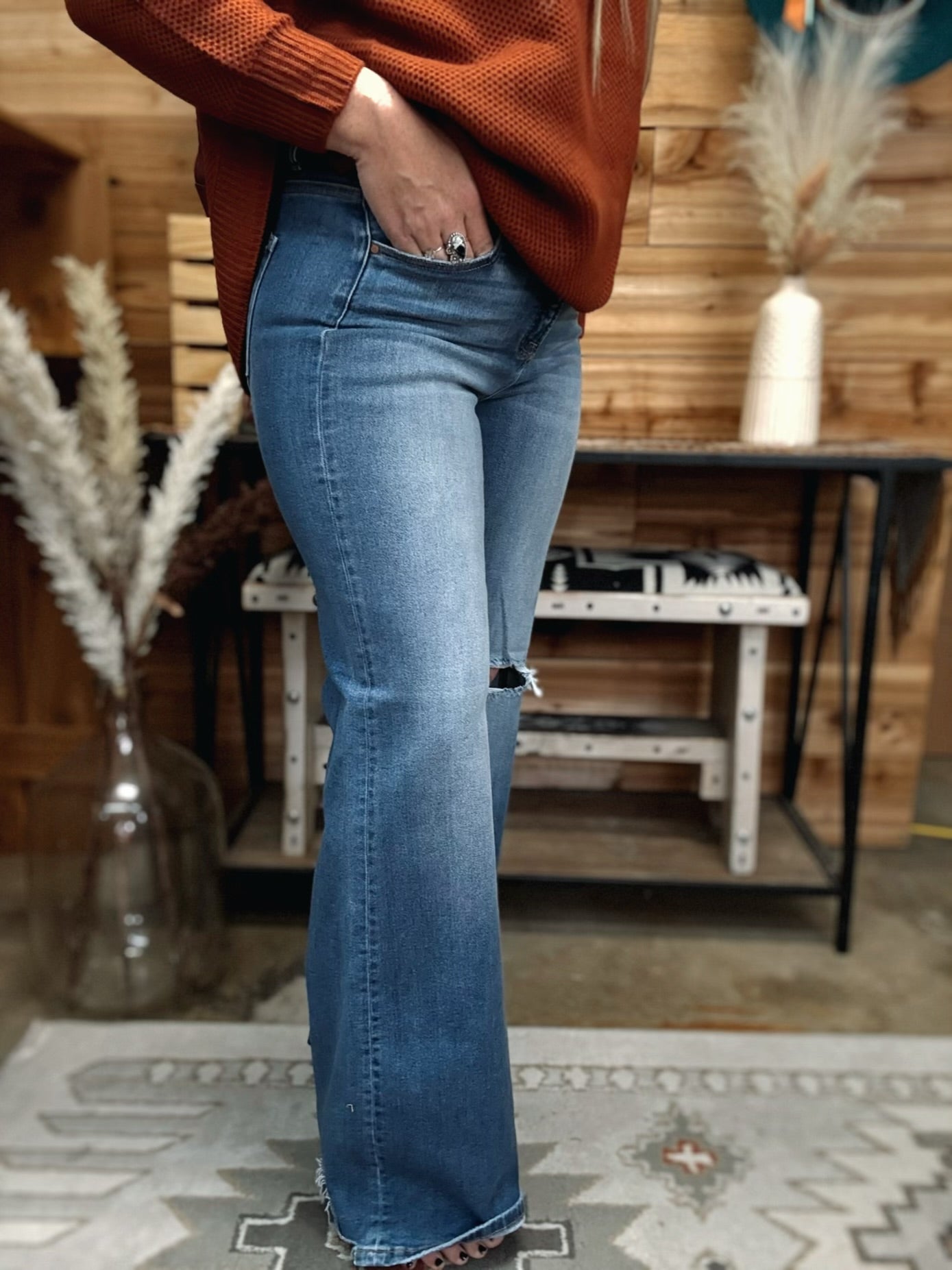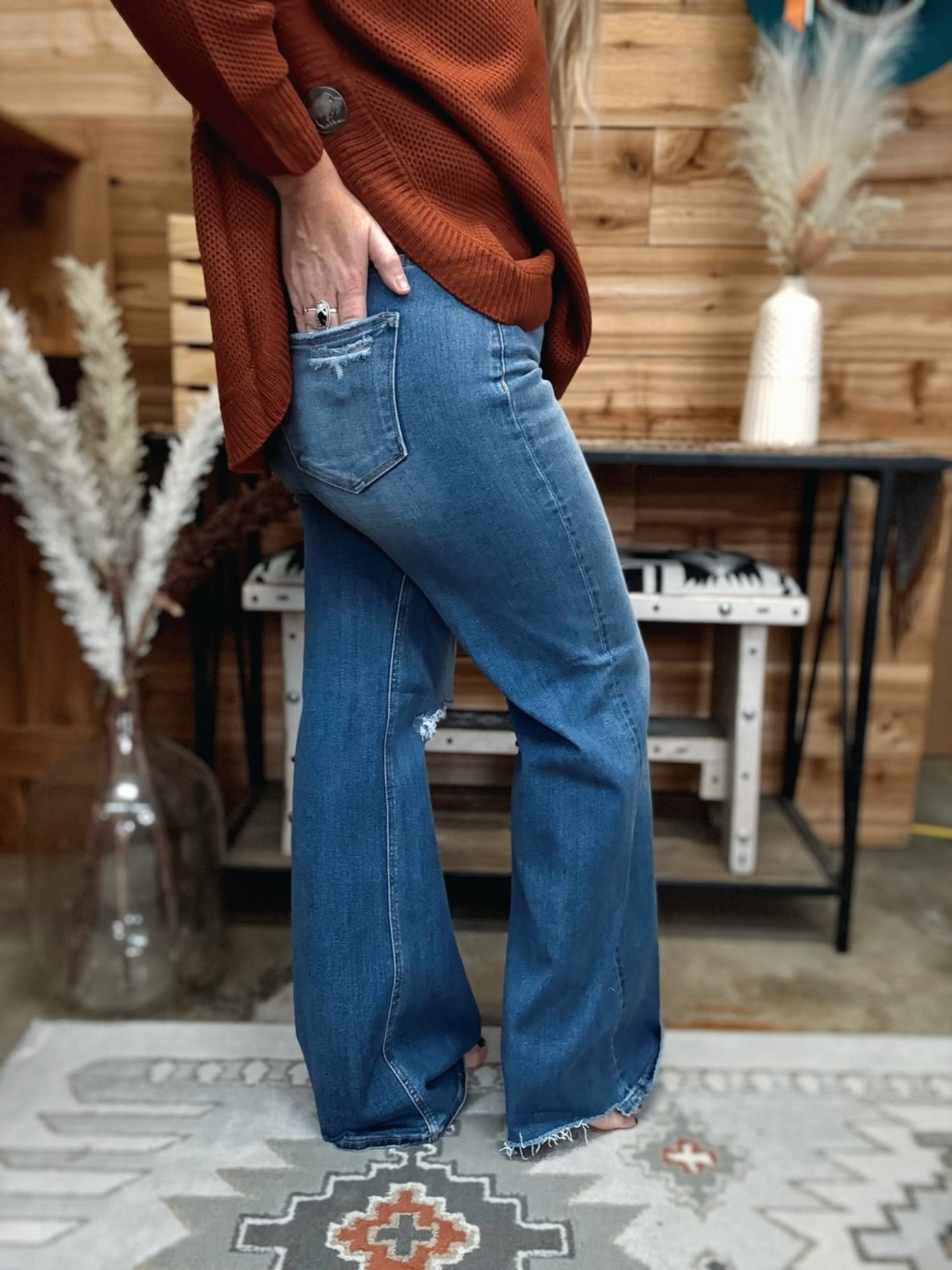 If you love a little bit of distressing these jeans are for you! They are super cozy and pair with just about anything. I can wear them with tall boots because the leg is actually wide enough that they don't look funny. Also would look cute casual with your favorite sneakers!