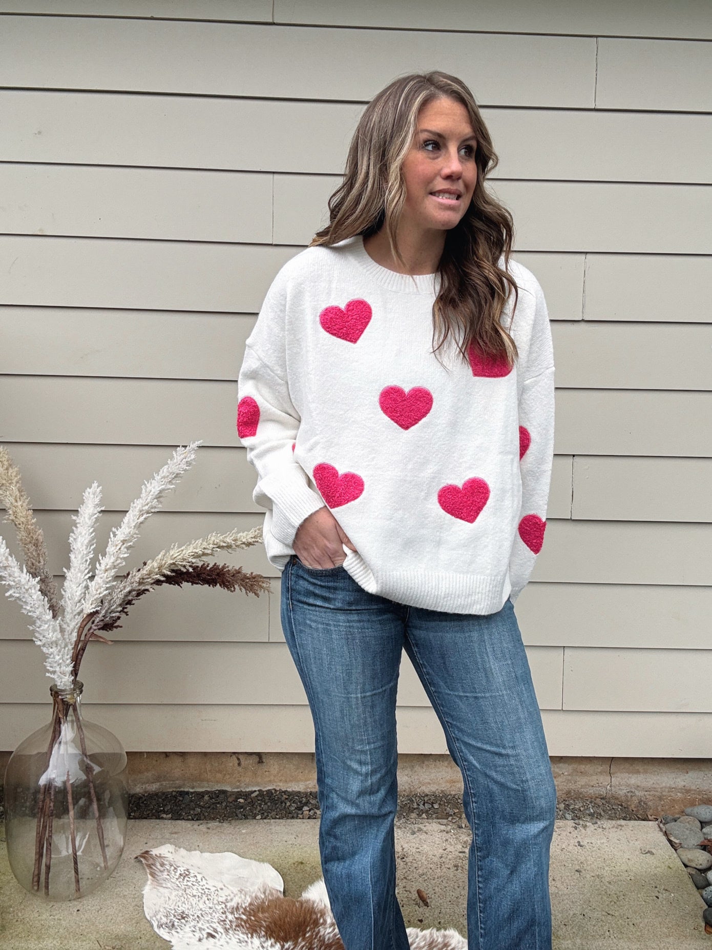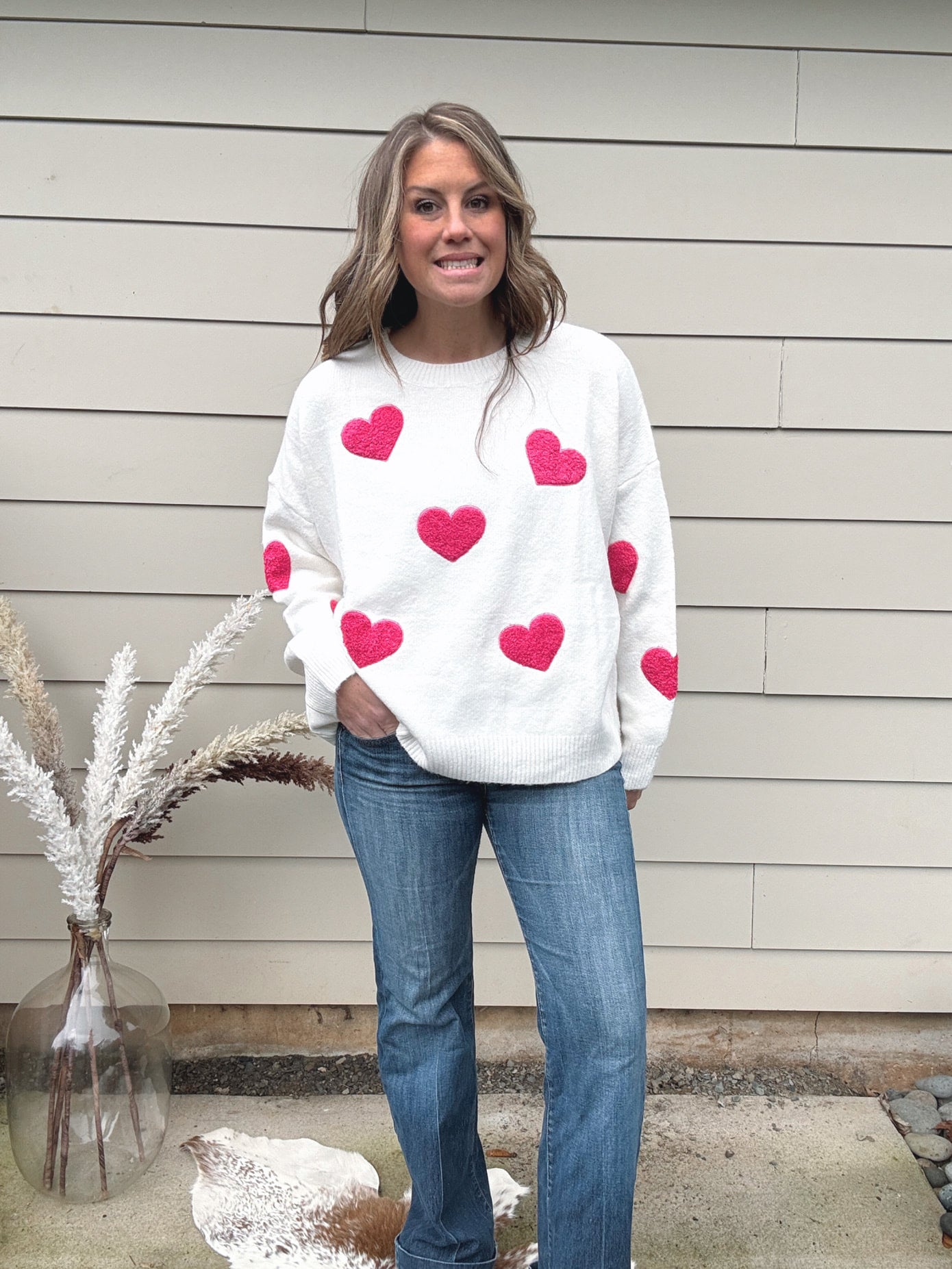 Cozy up in style with this must-have long sleeve heart sweater! Its oversized fit ensures maximum comfort, making it perfect for any occasion - from the valentine holiday to casual days out. Stay warm and look fabulous with this trendy piece!