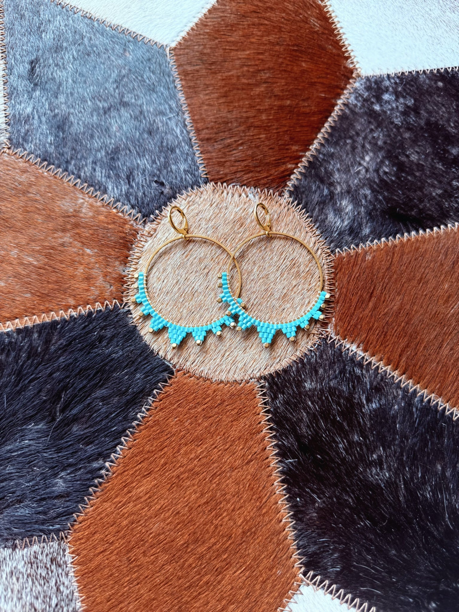 These Medium Starburst Beaded Hoops are a bold, eye-catching accessory that adds instant personality to any outfit. Handcrafted with intricate black beadwork, each hoop features a striking starburst pattern that radiates modern Western charm with a hint of edge.