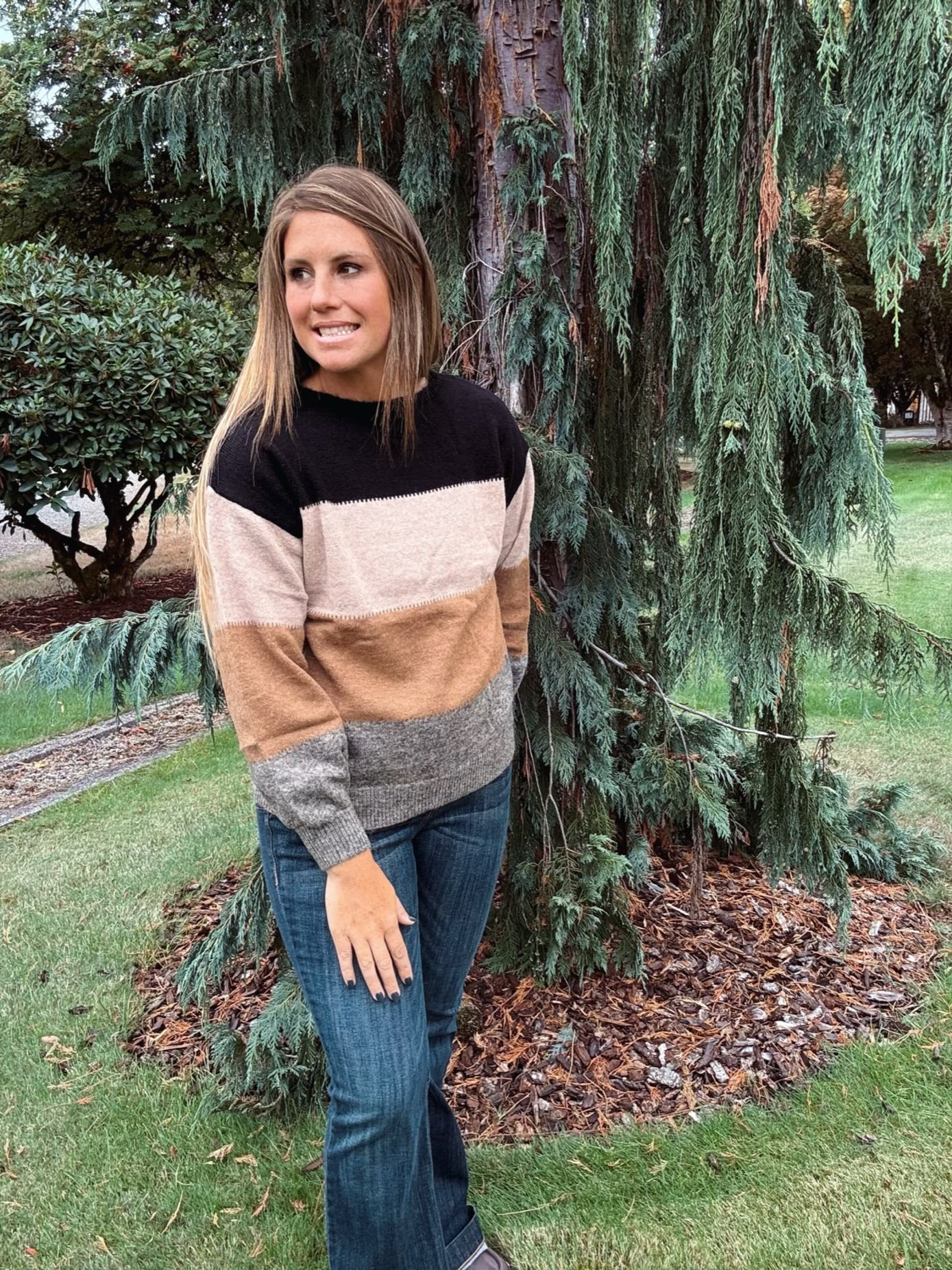 Stefanie is wearing the size Small/Medium for a more fitted look. If you prefer an oversized, relaxed fit, I recommend sizing up. Whether you’re headed out to the pumpkin patch or cozying up for a day out, this sweater is ready to go wherever fall takes you.