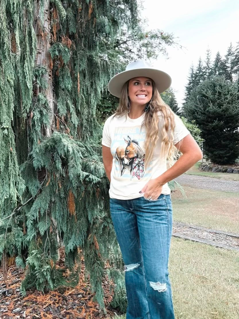 This tee is for the free-spirited, wild-hearted soul. Featuring a beautifully illustrated burro rocking a neck scarf and plenty of personality, it’s giving bold, independent, and a little bit sassy vibes!Â